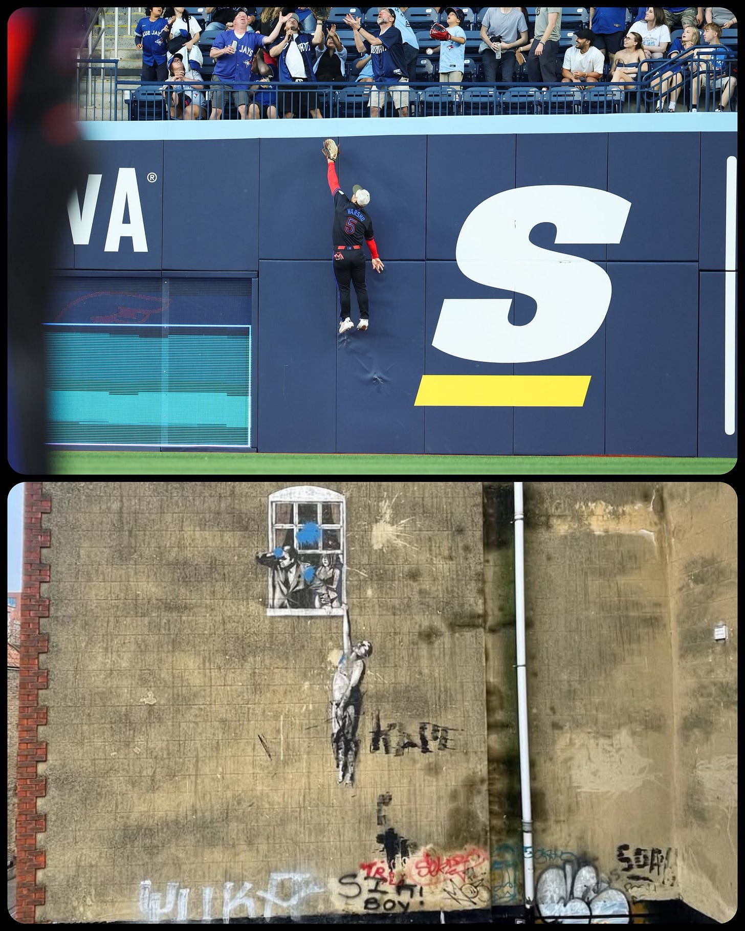 38. Well Hung Lover, by Banksy, 2006, photo by @mik3